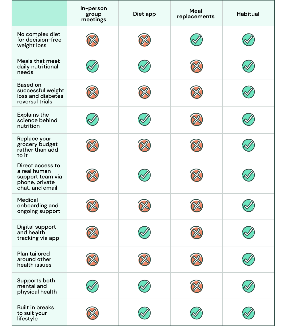 Our goal at Habitual is to make better health achievable for everyone, which is why our programmes have taken the successful elements of other health and weight management tools to create a full 360, holistic approach. We understand that it's not just about physical health, the numbers on the scale, or your life at that exact moment. To us, it’s about helping you feel supported mentally and physically on this journey of positive change to prepare you for a future of better health.